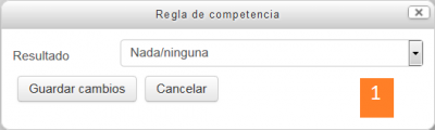 - El hacer click sobre de Configurar escalas muestra información extra acerca de la escala para valoraciones Debería de haber un valor por defecto, el cual es asignado cuando la competencia es completada por una regla automatizada - y la lista de valores que se consideran "competente/dominado" necesita estar enlistada de forma tal que los estudiantes puedan ver de un vistazo, cuales competencias han sido logradas y cuales no. Para más información, vea Competencias FAQ.