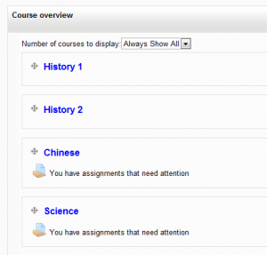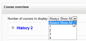 - An administrator can set the default maximum number of courses and whether to force this number in Administration > Site administration > Plugins > Blocks > Course overview.