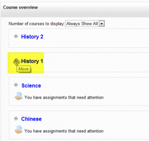 When a user clicks the "customise this page" button, they can then rearrange their courses by dragging them into different places. They can also choose how many courses they wish to display: