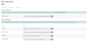 - Dynamic registration - Exchange of the relevant URLs and IDs is automated. The platform uses the tool's registration URL to begin this process.