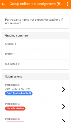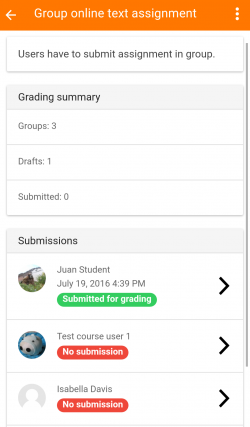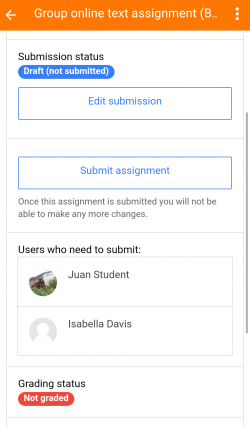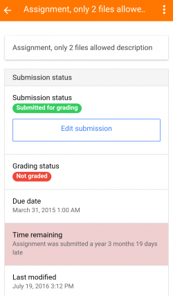 - Los estudiantes pueden hacer envíos de tareas usando la App, revisar sus envíos y revisar sus retroalimentación, comentarios y calificaciones.