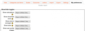 Los profesores pueden configurar sus preferencias para el Reporte del calificador vía 'Mis preferencias' . Estas configuraciones aplicarán para todos los cursos para ese profesor. El profesor puede cambiarlas en cualquier momento.