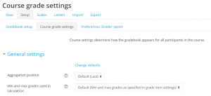 Las configuraciones por defecto de la calificación del curso son ajustadas por un administrador en Administración del sitio > Calificaciones.