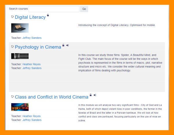 El cómo encuentre Usted cursos en Moodle depende de cómo ha configurado el sitio el administrador.