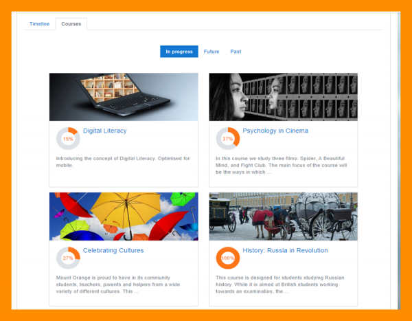 Cada usuario en Moodle tiene su propio Tablero que puede personalizar. El screencast en idioma inglés Dashboard da una breve introducción al respecto, y la documentación en Tablero da más información.