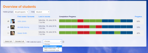 - Ver Vista General de curso del Progreso de Finalización para todos los estudiantes (block/completion_progress:overview)