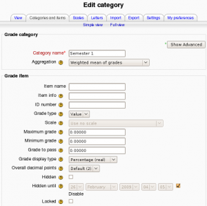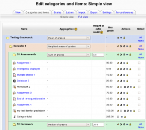 Forms for editing grade categories and their associated grade items (e.g. course category and course total) have been combined into one form. This also means that there is no edit icon in the grader report for course and category totals. You just edit the category itself instead.