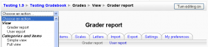 The order of items in the dropdown menu is slightly changed, with 'Categories and items' appearing directly after the gradebook reports, and settings and preferences appearing last (since these will be used least often).