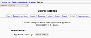 Note that reducing the number of aggregation types simply results in disabled aggregation types not appearing in the aggregation type dropdown menu. All existing grade category calculations remain the same, regardless of whether the aggregation type is later disabled by an administrator.