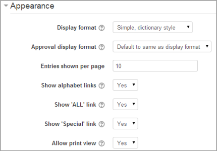 Establece el número de entradas que los consultantes de la actividad del glosario verán por página. Por ejemplo, el docente puede decidir que cada estudiantes pueda ver una definición por vez. Por defecto, son 10 las entradas.