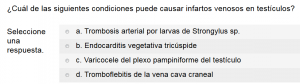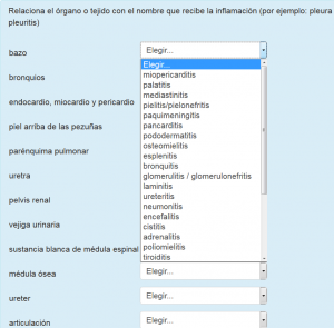 - En el Tipo de Pregunta con respuestas incrustadas (Cloze) es muy importante cada pregunta individual no le permita al estudiante descartar o resolver las otras preguntas del conjunto. Si en un caso simulado hay cuatro posibilidades de diagnóstico en la primera pregunta y en la segunda pregunta se preguntara el tratamiento, las opciones de respuestas para la segunda pregunta (tratamiento) deberán de corresponder a las cuatro posibilidades (diagnósticos) anteriormente planteadas.