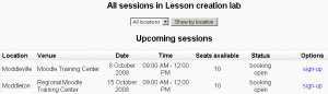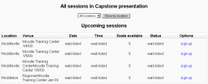 Las sesiones pueden tener fechas, o el estudiante puede apuntarse a una sesión a determinarse (en lista de espera).