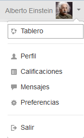 Está disponible un acceso rápido al Tablero desde el menú del usuario en la parte superior derecha de la pantalla después de haber ingresado al sitio: