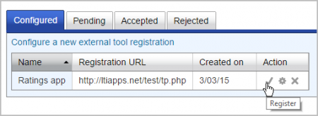 Una herramienta externa puede ser registrada por un administrador como sigue: