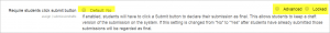 Si este valor es No, entonces los estudiantes no tienen que hacer clic en un botón de envío y podrán realizar cambios en los archivos subidos en cualquier momento.