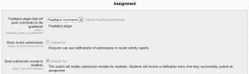 The following configuration options are available for an administrator under Administration > Site administration > Plugins > Activity modules > Assignment.