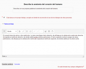 Los estudiantes pueden escribir su respuesta directamente en Moodle empleando el Editor de texto.