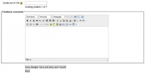 Esto te permite subir archivos con comentarios a la hora de calificar. Estos archivos pueden ser las tareas calificadas, documentos con comentarios o comentarios hablados en un archivo de audio. Hace aparecer la columna "Archivos con comentarios del profesor" en la tabla de clasificación. (Para acceder a la tabla de clasificación, haz clic en la actividad tarea y, a continuación, en el enlace "Ver/Calificar todas las entregas" del bloque Administración). Para subir archivos de comentarios, haz clic en la marca verde en la columna de calificación en la tabla de calificación y luego arrastra y suelta los archivos o utiliza el Selector de archivos para subirlos.