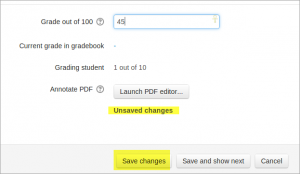 - Scroll to the bottom of the grading table and click 'Save all quick grading changes'
