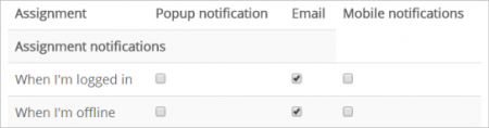 Submission Notification for Students - My Profile Settings > Messaging Tickboxes on the messaging page can be set by the student depending on their preference. A student can opt to receive notification via email, popup message, jabber or -if enabled by admin -mobile phone.