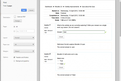 - Instale el plugin adicional quiz archive report e imprima la página web a PDF.