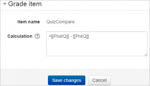 Debajo del campo del cálculo hay una lista de categorías de calificación del curso y de ítems de calificación. Junto a cada total de categoría o de ítem hay un número ID que Usted puede usar en su cálculo (el cual ya está rodeado con los necesarios paréntesis cuadrados dobles).