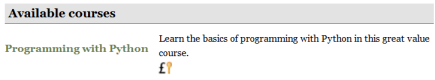 Cuando un nuevo usuario haga click en el enlace hacia su curso, verá un mensaje que lo invita a ir a PayPal para comprar el acceso al curso. En la lista de cursos, los cursos PayPal tienen un ícono con el signo del dolar norteamericano a su lado.