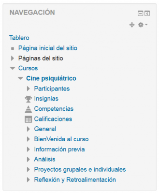El bloque de navegación es usado para proporcionar enlaces para navegar al usar el tema Limpio (Clean) o el tema Más (More) o un tema personalizado basado en el tema Limpio. (El Tema Boost a partir de Moodle 3.2 usa un cajón de navegación en lugar del blque de navegación).