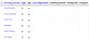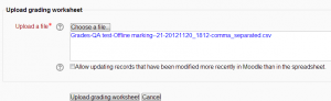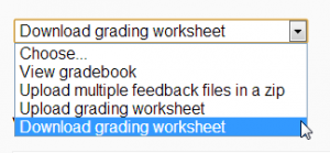 | Nota: La hoja de trabajo para calificar fuera de línea no funciona para usuarios con Idioma diferente del inglés en versiones de Moodle anteriores a 3.1. Vea MDL-40597. |