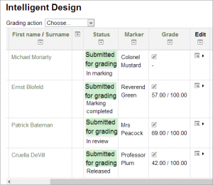 - Marker marks each submission and transitions the grading to "Marking completed" as each submission is graded.