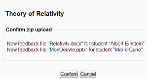 - Se mostrará una pantalla de comprobación, mostrando tus ficheros de retroalimentación (si comprimes ficheros en un Mac, asegúrate de borrar la carpeta _MACOSX)