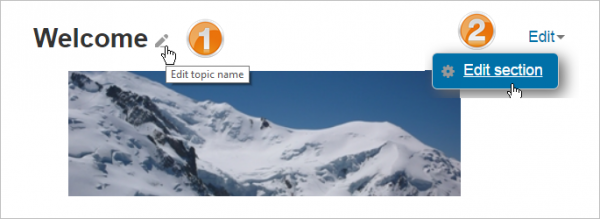 Con la edición activada, los recursos y bloques tendrán íconos que realizan diferentes funciones tales como editar/mover/copiar/eliminar/ocultar.