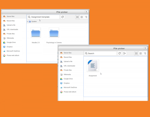 - Vea Gestionando repositorios para información acerca de como permitirles a sus usuarios que usen archivos de fuentes externas (como por ejemplo, Google Drive, Dropbox y MS OneDrive) en sus cursos.