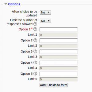| Existe documentación diferente para varias versiones de Moodle: Esta págnia era para Moodle 3.4. La página más actualizada está en Configuraciones de elección |