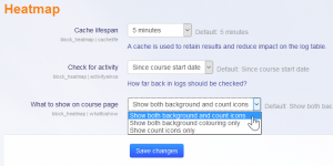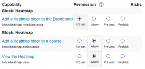 Controla quien puede ver el bloque de Hetmap y subsecuentemente la sobreposición del hetmap sobre del curso. Esto es algo que geralmente solo será relevante para los Profesores, por lo que está oculto para los estudiantes:- Profesor (editingteacher)