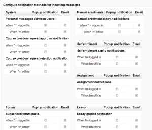 Because users might have many different messaging options, they are ordered into different components -for example, Forum, Assignment, System, Enrolments etc.