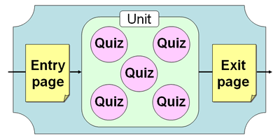 Each quiz may be a static web page or an interactive web page which offers students text, audio and visual prompts and records their responses. The quizzes are created on the teacher's computer using authoring software and then uploaded to Moodle. The collection of the quizzes is referred to as a unit.