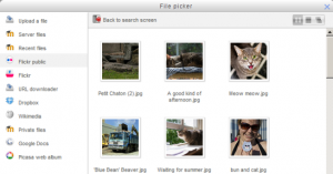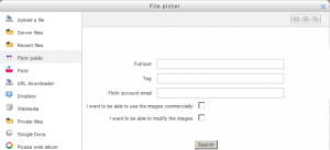 The Flickr public repository enables a user to search Flickr and copy files from there into any of the Moodle file interfaces.