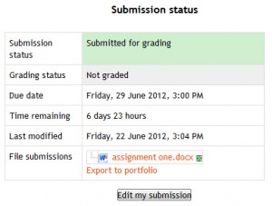 There should now be a Last modified date and the file(s) uploaded will also be displayed. Depending on how the assignment is setup the status will either read ‘Submitted for grading’ - in which case no further action is need, or ‘Draft (not submitted)’.
