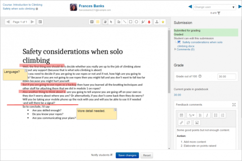 - Teacher view of a PDF assignment which can be annotated inline.Ingrese con username 'teacher' y password 'moodle'