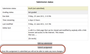 Note that once the assignment is 'submitted’ no further changes are allowed.