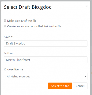 Si el administrador ha habilitado esta característica para, ya sea el Repositorio Google Drive o el Repositorio OneDrive entonces los estudiantes pueden subir un archivo como un 'enlace de acceso controlado' desde cualquiera de estos repositorios. El archivo será entonces copiado a la cuenta del sitio y el estudiante ya no podrá editarlo.El estudiante conserva el archivo original en su propio Google Drive o OneDrive. Al profesor se le otorga permiso para editar el archivo con la finalidad de calificarlo, y al estudiante se le envía una copia del archivo editado.