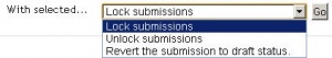 Or you can select two or more students by putting a tick in the select column and going to 'Lock submissions’ from the With selected menu under the grading table.