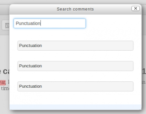 - En la ventana emergente para Buscar comentarios, escriba el término que quiere buscar en la caja para Filtrar comentarios....