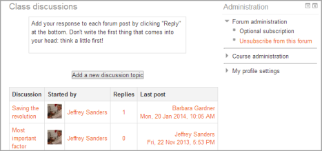 Nota: El foro de novedades en un nuevo curso Moodle es solamente para que los profesores pongan anuncios y NO es un foro de discusión para los estudiantes.