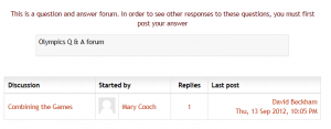 El Foro de Preguntas y Respuestas es el más adecuado cuando se requieran respuestas a una pregunta en particular. El profesor plantea una pregunta y los estudiantes anotan sus posibles respuestas. Por defecto, un foro de Preguntas y Respuestas requiere que cada estudiante publique su respuesta antes de poder ver las de los demás.