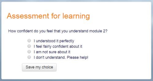 Una actividad de elección le permite plantear una pregunta y configurar botones de entre los cuales los estudiantes pueden seleccionar un número de respuestas posibles. Los estudiantes pueden elegir una o más opciones y pueden actualizar su elección si Usted se los permite. Las elecciones pueden ser útiles como encuestas rápidas para estimular el pensamiento sobre un tópico/tema; para permitirle a los alumnos que voten sobre la dirección que tomará el curso, o para sopesar el progreso.