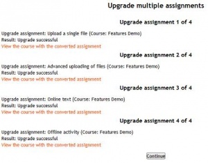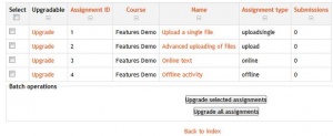 Nota: Esta herramienta ha sido eliminada del núcleo de Moodle 3.6. Vea el asunto del tracker Remove Assignment upgrade helper from core.