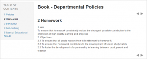 You now see a chapter and a sub chapter. Because we did not elect to number chapters, the fact that the second chapter is a sub chapter cannot be seen in the table of contents. Note that you do, however, see this in the title above the content.