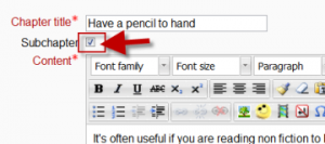 Note that the sub chapter box is checked. A chapter may have many sub chapters, but sub chapters cannot have further sub chapters. In order to keep this resource simple, you are limited to two levels (Screenshot 2).